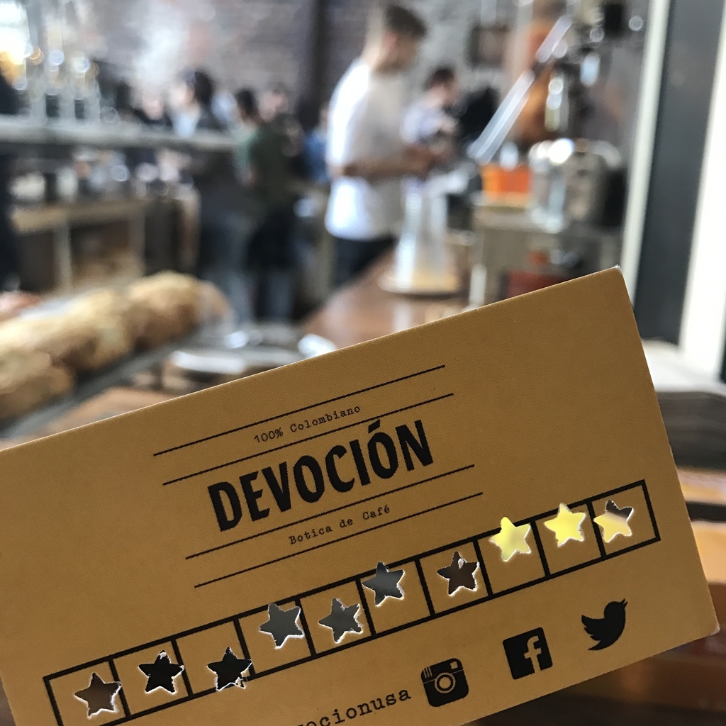 去Devocion換免費咖啡,上次店員送我已打好十個星星的集點卡(開勳),這個月有免費美術館逛又有免費咖啡喝好幸運。